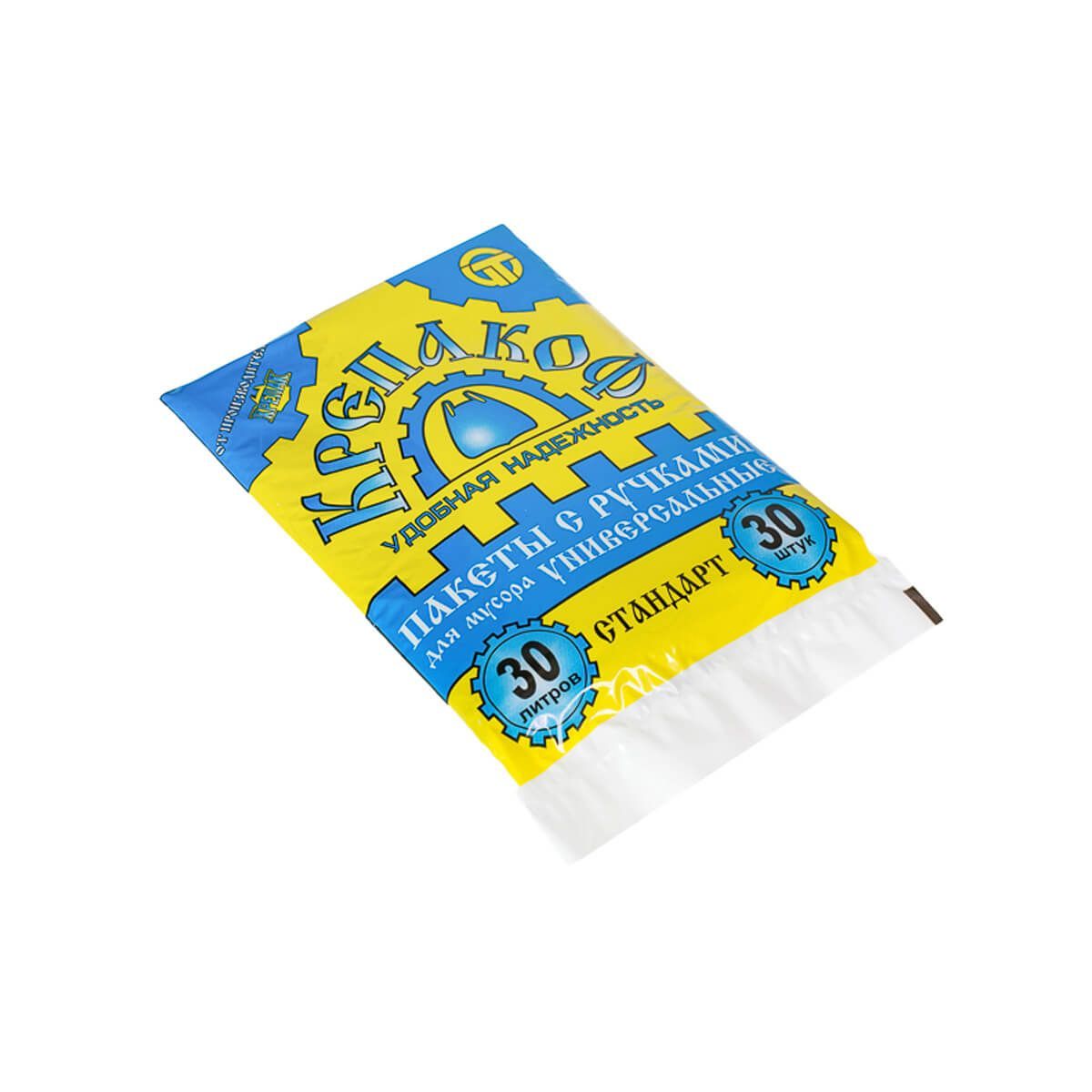 Мешки для мусора 30 л, с ручками, черные, в пачке 30 шт., ПНД, 9 мкм, 620х480 мм, Крепакоф, 4607075710177